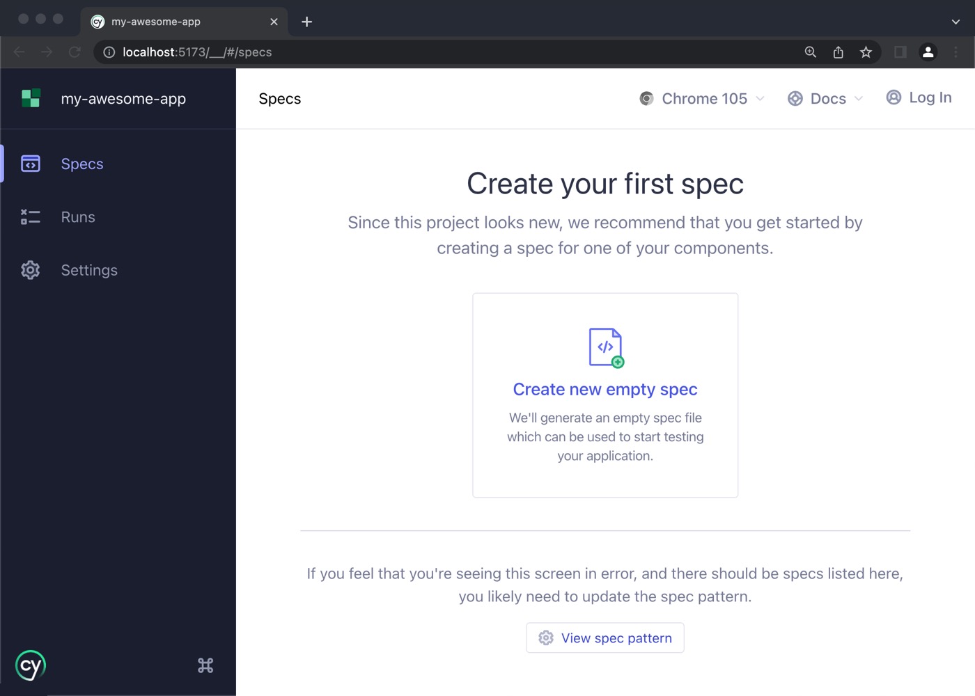 At this point, your project is set up, and Cypress is ready to go, but we have no components to test yet.